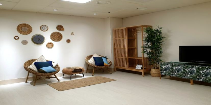 특실과 일반실 모두 거실 + 텔레비전 + 화장대 + 냉장고 등을 갖추고 있습니다. 아무래도 온천욕을 하는 스파룸에서 크기 차이가 있습니다.